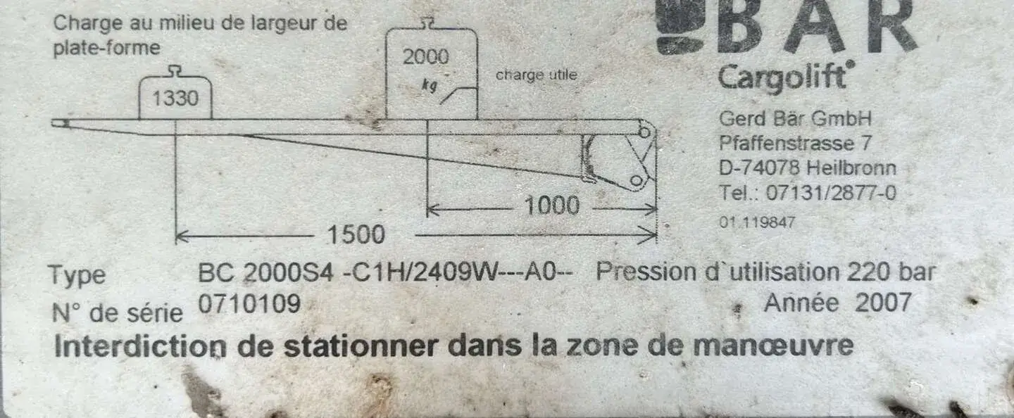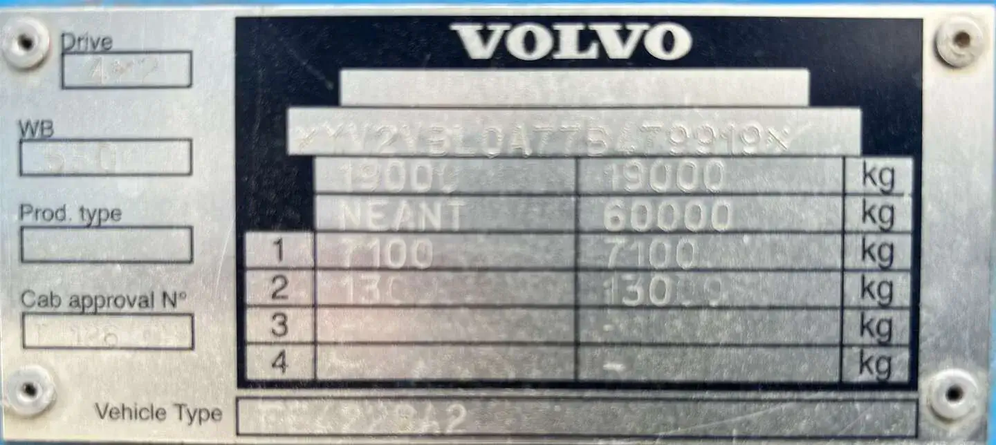 Poids Total Autorisé en Charge (PTAC) : 19,0 Tonnes